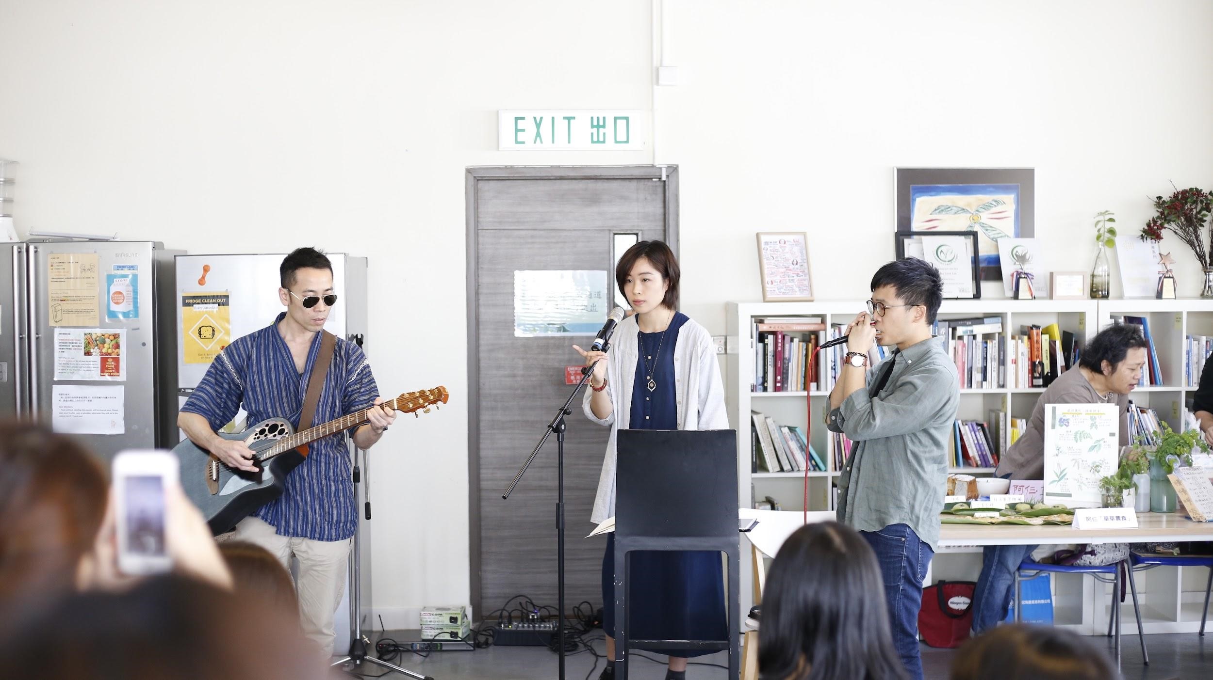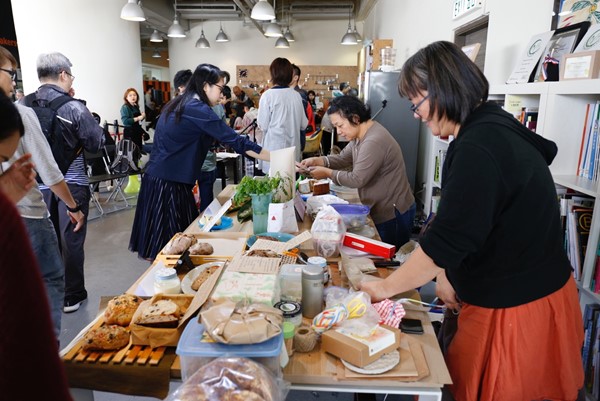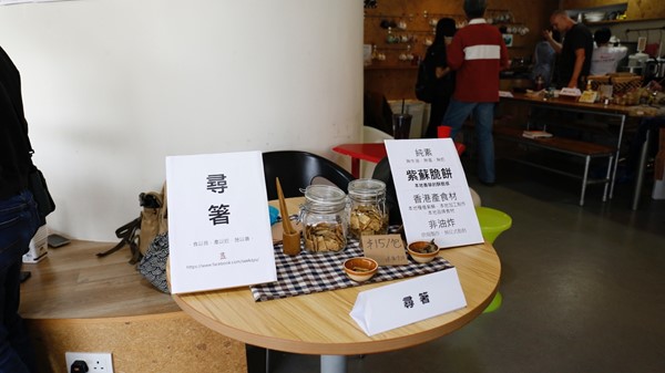 食物方面,也有很多有心檔主帶來自家製作的佳餚與各位參加者分享喜悅,包括慢慢呼吸的天然酵母麵包(Sourdough bread)、八鄕菜阿竹的本地蔬菜、Jovial 手作慢食的「真熱狗」、阿仨 “草草農食”的艾草滋味粿食和香茅清香茶飲 、八爪魚手感料理的肉桂薑蜜、在地美饍的各種釀漬及醬料、尋箸的紫蘇脆餅、發酵吧!自由士多吧的腐乳及Fishmonk的可持續發展魚蛋。