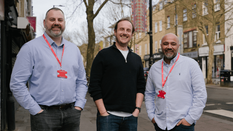 Big Issue Recruit 就業顧問 Stuart (圖左) 及 Shak (右) 與求職者 Kane (中)